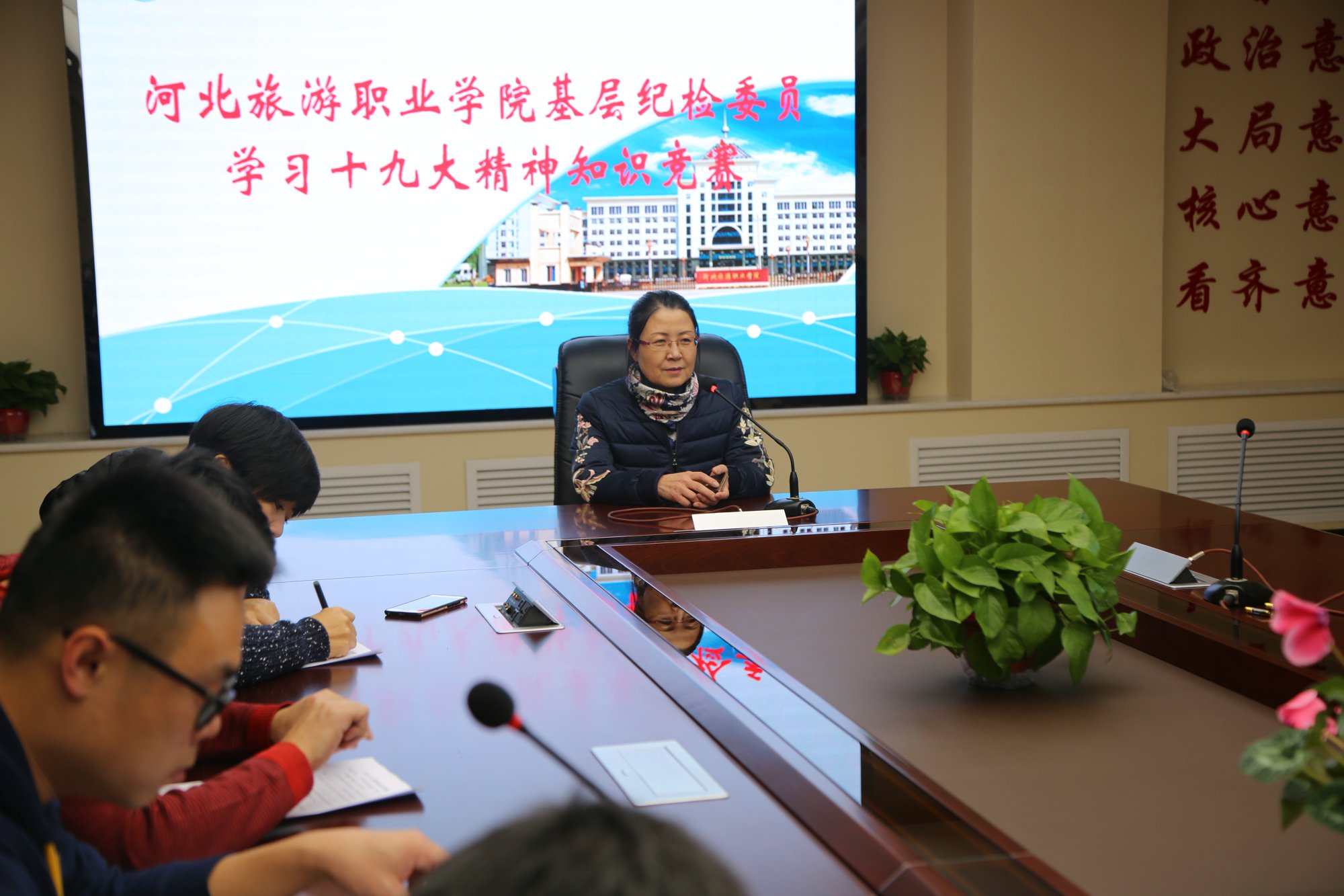 为进一步深入学习贯彻党的十九大精神,推进学院基层纪检工作开展, 12月5日下午,学院纪委组织全体基层纪检委员开展了学习党的十九大精神知识竞赛活动。学院纪委书记王亚茹主持活动,全体基层纪检委员参加了知识竞赛。