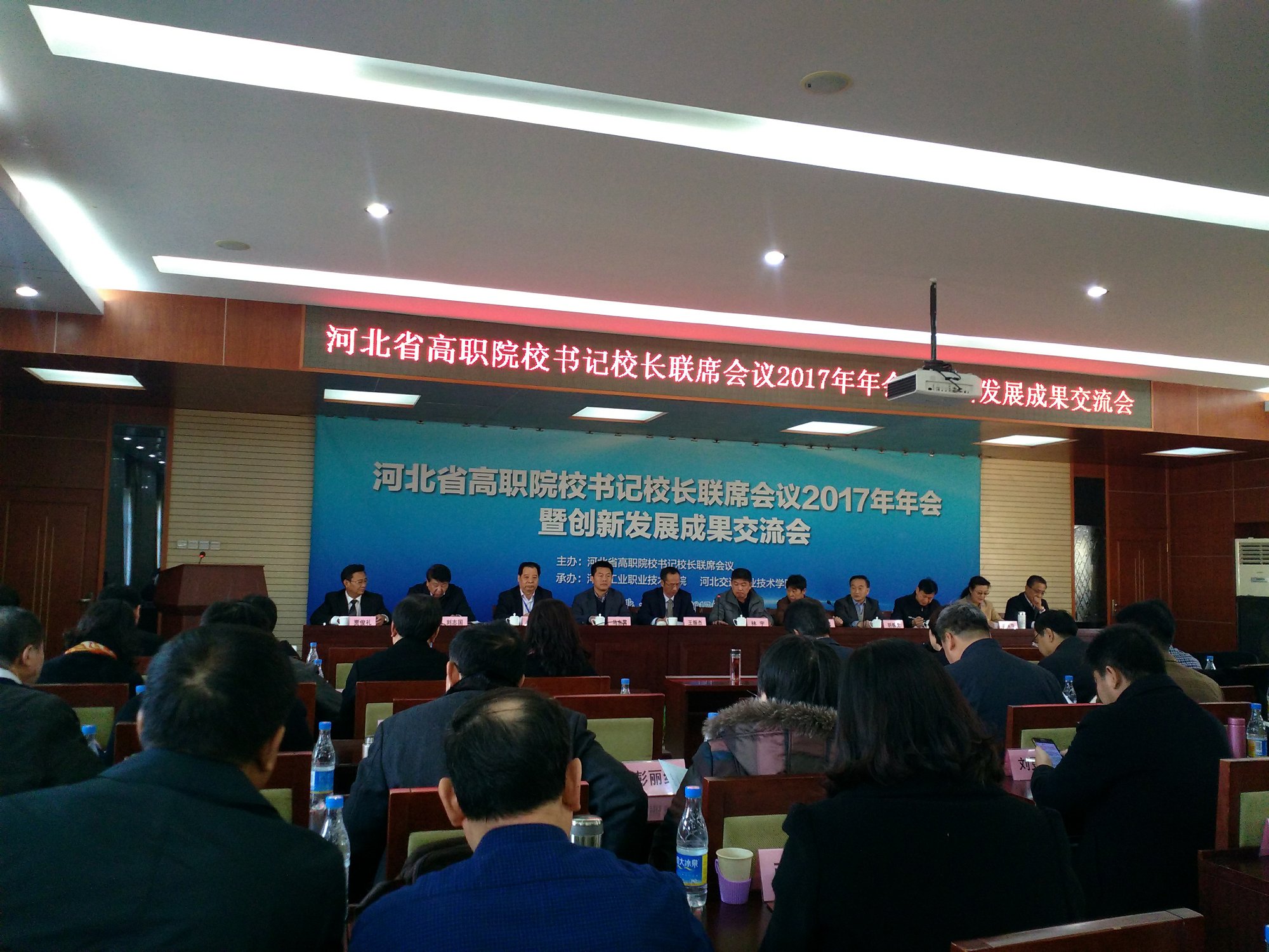 12月10日,学院党委书记杨宏、院长汤云航和创新办主任张国成参加了河北省高职院校书记校长联席会议主办、河北工业职业技术学院、河北交通职业技术学院举办的“河北省高职院校书记校长联席会议2017年年会暨创新发展成果交流会”,会议以“贯彻落实十九大精神,推进河北高等职业教育创新发展”为主题,集中展示我省高职院校在质量发展、特色发展、内涵发展、创新发展等方面的经验和成果,共同探讨新时代背景下我省高职教育充分均衡发展的思路和举措。会上,教育部职成教司高职发展处林宇处长做了主旨报告,邢台职业技术学院、河北软件职业技术学院、沧州职业技术学院和河北对外经贸职业学院分别进行了创新发展建设经验交流分享;联席会顾问胡振文传达了省教育厅贾海明副厅长“中期检查”系列讲话精神,联席会主席、河北工业职业技术学院党委书记王振杰做了“校联会2017年工作总结及2018年工作设想”报告。