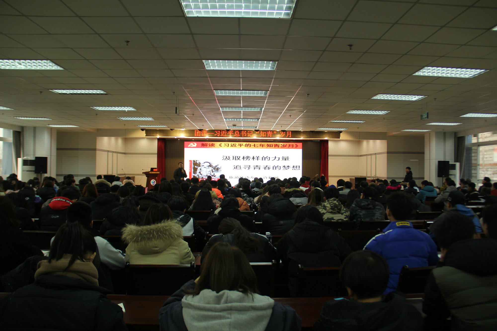 讲座共分为两部分,第一部分由院团委副书记张维志解读十九大精神,第二部分由旅游外语系团总支书记许新国解读《习近平的七年知青岁月》。