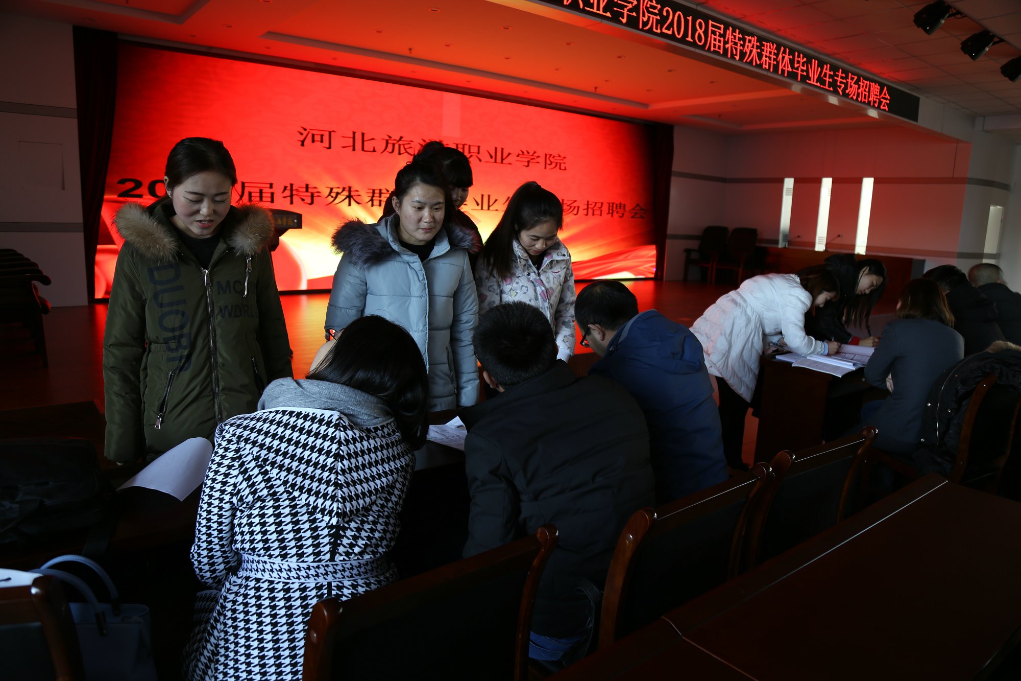 11月28日下午,学院就业指导中心为了进一步帮扶我院各系特殊群体毕业生就业,精选了北京海奥园林景观设计工程有限公司、中海物业集团有限公司、中国石化润滑油有限公司、承德市春秋国际旅行社有限公司等五家企业,在行政楼204会议室,举办2018届特殊群体毕业生专场招聘活动。计有100余名特殊群体毕业生参加企业宣讲会,并有30余名特殊群体毕业生通过深度面试,与企业达成了就业意向。