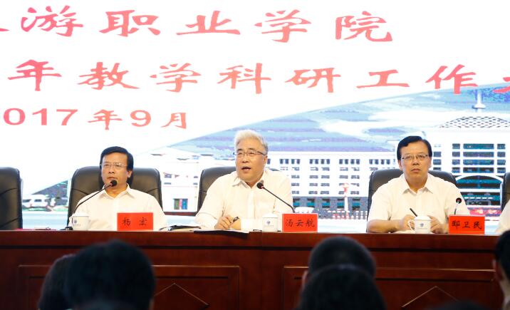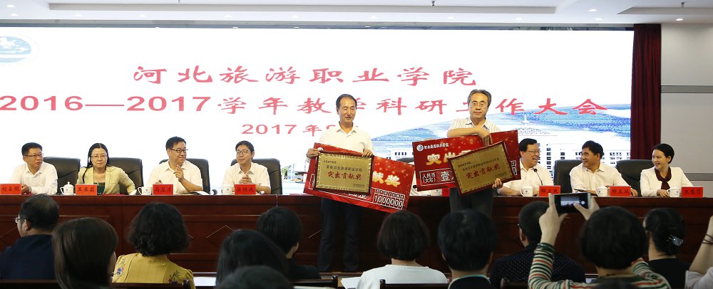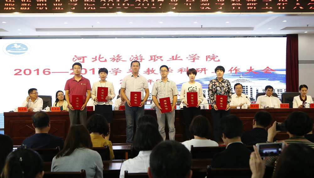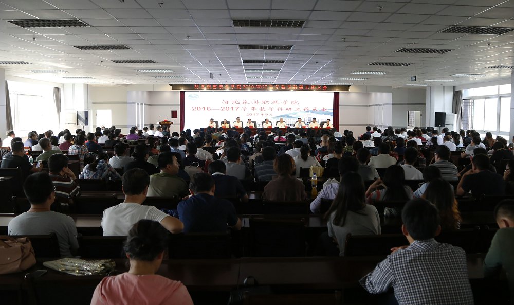 汤云航院长在会上做了教学科研工作报告。汤云航院长指出,2016-2017学年度是学院发展的重要年度,开启了教学科研新征程,教学科研工作平稳运行、稳中有进。汤院长总结了2016-2017学年度学院教学科研工作突出亮点,学院全员、全程、全域育人环境进一步改进和优化,学院国际教育进入全国高职院校“国际影响力50强”,学院体育代表团在河北省第十九届大学生运动会上取得乙组团体总成绩第一的优异成绩,学院修订了新的人才培养方案,学院三年创新发展行动计划项目建设扎实推进。汤院长强调指出,“建设省级优质高等职业院校,做大做强旅游学院”,既是政府的要求,也是学院的奋斗目标,要在全院范围内深入开展“如何做大做强旅游学院,如何建设好省级优质高等职业院校”主题讨论,要求各部门从学院、部门实际及未来发展找出方向目标,确定实施路线图,明确具体措施,明晰未来远景。汤云航院长阐释了做大做强学院的含义、原则与要求,并希望全体教职工凝心聚力,开拓进取,克服职业倦怠,以强烈的责任感和使命感为学院的发展做出更大的成绩。