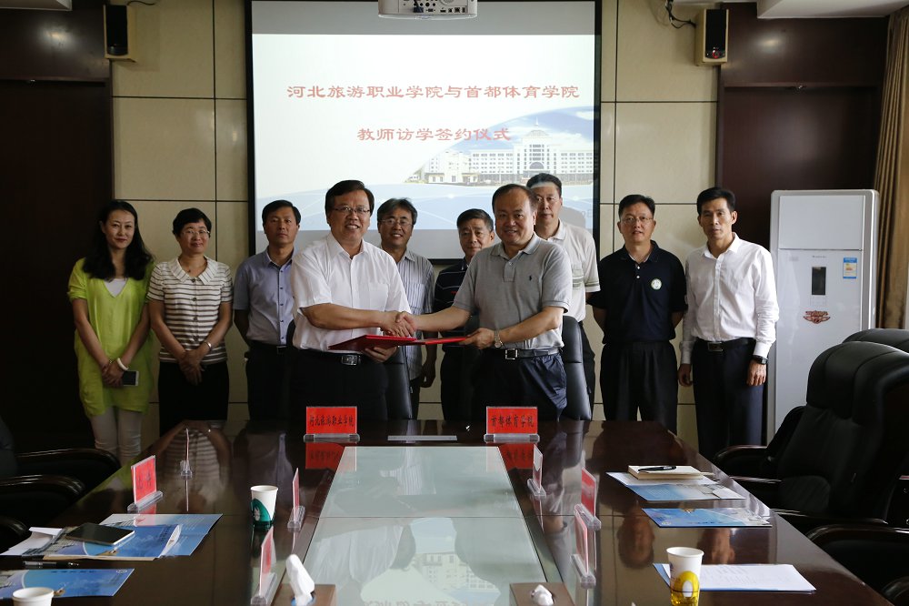 会后双方签署了教师访学合作协议,这也是落实“京津冀体育健身休闲发展协同创新中心”项目的重要举措。此次访谈由科研处组织,旅游外语系、旅行社管理系、旅游管理系及教务处相关人员参加了座谈会。(科研处供稿)