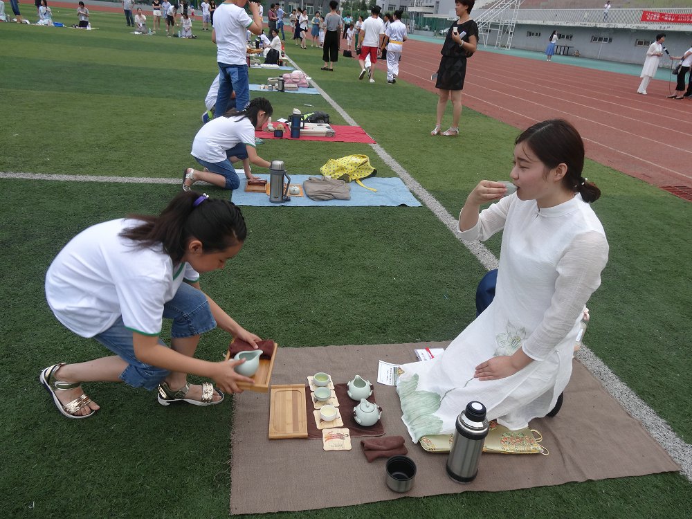 随后,我院师生茶艺协会的茶友及来自市内各高校的茶艺协会、小茶人社团及各界的茶艺爱好者等百余人,席地而坐,品茗交流、互动切磋。小茶人社团的诗朗诵、旅游管理系铜壶队表演的《龙行十八式》赢得了满堂喝彩。“无我茶会”自然、和谐的形式,人人泡茶、人人奉茶、人人品茶的理念,让校园充满了浓浓的茶文化氛围。身在浓郁的优秀传统文化氛围中,了解学习茶艺文化,把盏欣赏精彩的茶艺表演,愉悦身心,别有情趣。几位国际友人的参与更平添了茶会的祥乐和谐气氛。