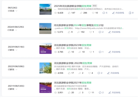 招生宣传精准务实,品牌影响力持续扩大。学校聚焦考生及家长的核心需求,构建“线下深度互动、线上权威发布、专属咨询保障”的三维宣传体系,通过扎实举措提升学校品牌的知名度与认可度。学校坚持与学生和家长进行面对面交流,招生宣传员进入高中学校派发招生简章,宣讲学校优势、解读招生政策,使学生切实感受校园文化与专业特色,传递学校的办学优势与人才培养成果。在线上,学校依托官方微信公众号、官网、河北省教育考试院《考试与招生》计划指南等权威平台发布招生信息,确保信息准确、发布及时,直接触达考生。在招生录取的关键时期,学校成立“河北旅游职业学院高考咨询服务站”,为考生提供在线实时答疑服务,高效解决考生的报考疑惑。这些举措为生源质量的稳步提升奠定了坚实基础。