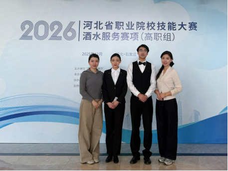 近日,由河北省教育厅主办,河北省酒店职教集团、石家庄财经职业学院承办的2026年河北省职业院校技能大赛圆满落幕。在“酒店服务”赛项中,张思浓、陈曦、陈姝羽、陈嘉祺四位同学组成的参赛团队荣获二等奖;在“酒水服务”赛项中,陈曦、韩旭两位同学组成的参赛团队同样荣获二等奖。