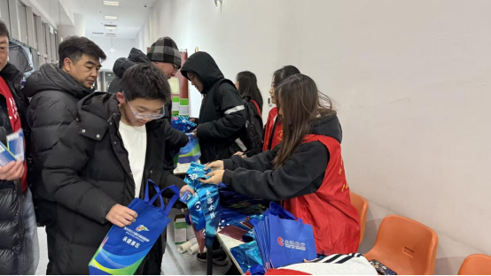 活动现场,志愿者们分工协作,热情饱满,迅速投入到各个岗位。在赛场入口,志愿者化身“暖心接待员”,有条不紊地查验门票,疏导人流,并发放赛事手册与应援道具,提前点燃观赛热情。观众进场后,志愿者变身“贴心引导员”,身穿红马甲穿梭在人群中,耐心指引座位。赛场外的饮水服务区,志愿者们时刻待命,热情引导观众有序接水。他们以严谨细致,务实笃行的服务准则,让青春在躬身奉献中绽放别样光彩。