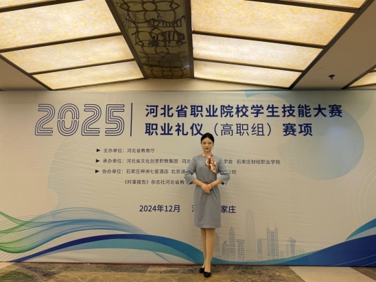 以技艺为桨,做专业上的“领头雁”。“工欲善其事,必先利其器。”廖婉彤深知,扎实的专业技能是立足之本。她对待学业态度端正、勤奋刻苦,学习成绩始终位列专业前茅。2025年,她代表学校征战世界职业院校技能大赛,凭借精湛的专业技艺和稳定的现场发挥,一举斩获世界职业院校技能大赛金奖,并荣获河北省技能大赛三等奖。这份沉甸甸的国奖荣誉,不仅是对她专业技能的最高肯定,更是河北旅游职业学院人才培养质量的有力证明。