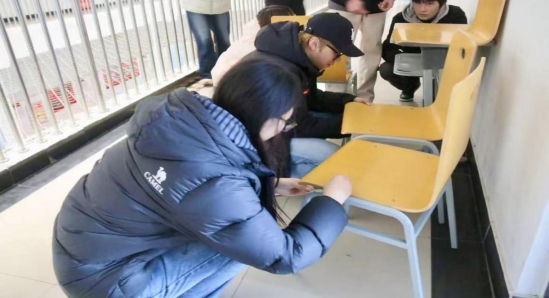 文化旅游学院文旅志愿支队对3号教学楼桌椅进行全面排查与维修