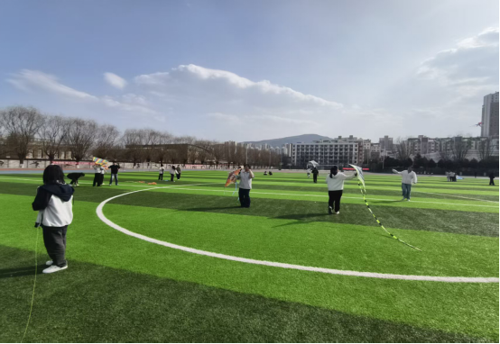 大家相互配合,仔细检查风筝结构、整理放飞线,操场上顿时充满了欢声笑语。大家借助和煦的春风,小心翼翼地将风筝送上蓝天。看着一只只承载着心愿的纸鸢在蓝天中翱翔,同学们的脸上洋溢着喜悦与自豪。