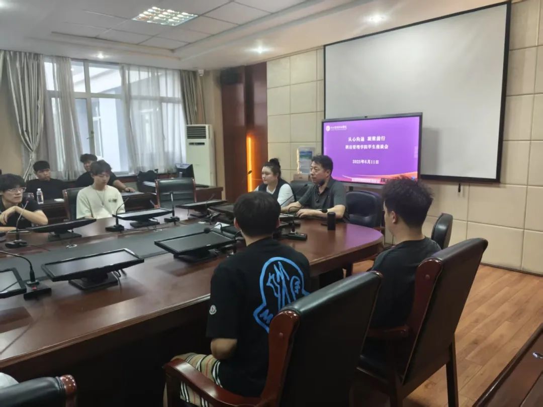 本次座谈会旨在全面掌握学生思想动态,及时解决学生实际需求,通过搭建师生交流平台,用心为学生办实事,不断增强学生对我校的认同感、归属感和幸福感,助力学生全面发展。酒店管理学院将以此次座谈会为契机,持续坚持以学生为本的理念,为学生的成长成才提供良好的学习、生活环境。
