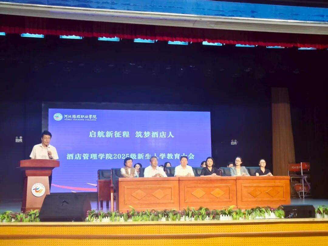 9月7日下午,酒店管理学院在南苑大学生活动中心举行了“启航新征程 筑梦酒店人”为主题的2025级新生开学典礼暨入学教育大会。学院全体领导、2025级新生辅导员、辅导员助理及2025级全体新生出席本次大会,酒店管理学院团总支书记雒鹤飞主持本次大会。