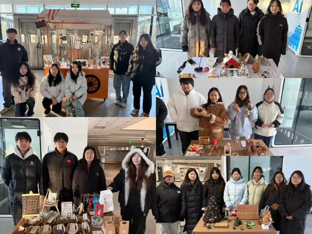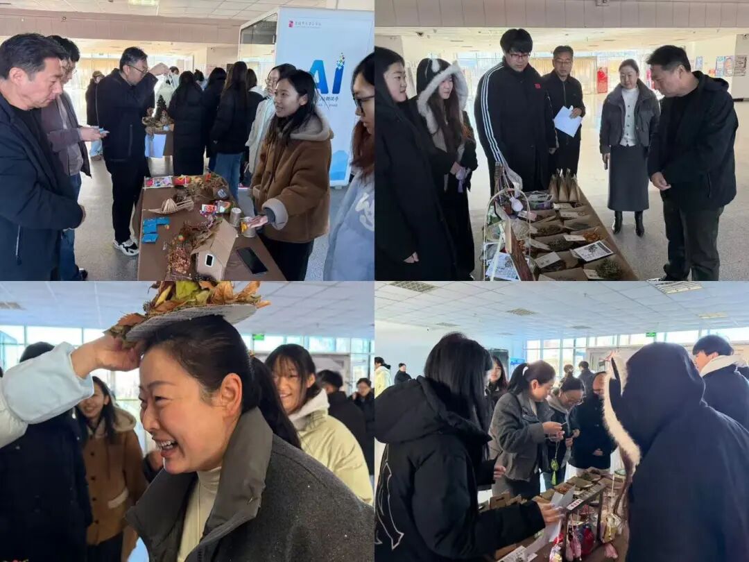 活动现场,从落叶拼贴的装饰画、松果制成的圣诞树,到竹编小提篮、草木香包,这些作品均以自然废弃物、生活旧物为原料,既贴合民宿“在地化”“轻成本”的运营逻辑,又融入了日常氛围感与学子巧思。师生们围在摊位前体验香包DIY、试戴落叶头饰,欢笑声语里,“零成本美学”的理念悄然传递。