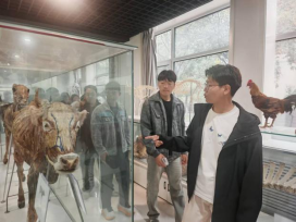 随后,师生一行移步至动物标本展示厅。该展厅与文化长廊自2017年10月开放以来,已成为学院核心的实习实训基地和科普基地,并积极承担社会责任,面向公众开展开展科普活动。