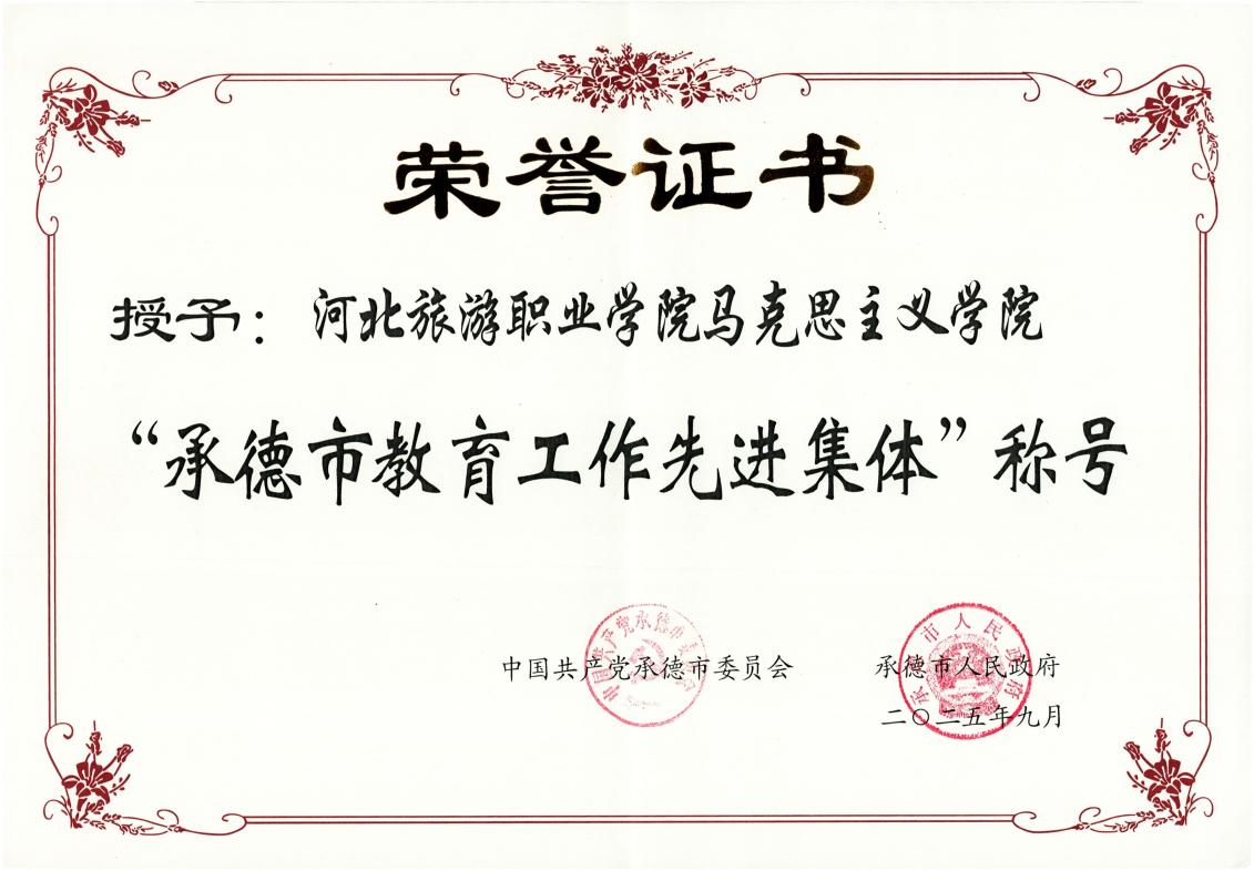 此次获评“承德市教育工作先进集体”,既是对马克思主义学院过往工作的充分认可,又是对未来发展的激励与鞭策。站在新起点,马克思主义学院将继续高举思想旗帜,以“走在前、出特色”为发展目标,深入实施“名师、名课、名品”“三名工程”,持续深化思政教育改革创新,为学校落实立德树人根本任务、提升人才培养质量注入更强动力、作出新的更大贡献。