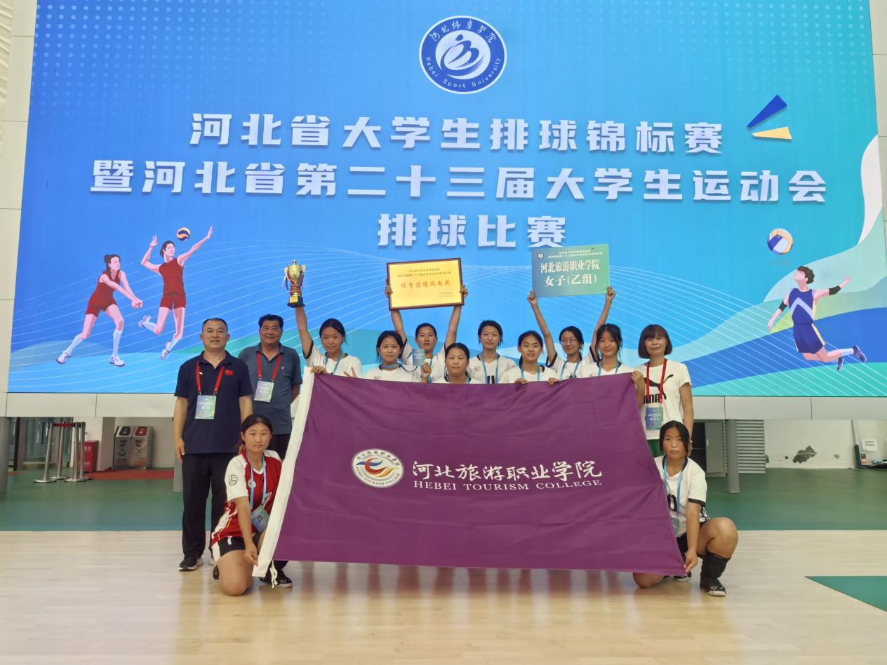 2025年7月12日,由河北省教育厅主办、河北体育学院与河北政法职业学院承办的河北省第二十三届大学生运动会排球比赛在河北体育学院圆满落幕。经过激烈角逐,河北旅游职业学院女子排球队获乙组第六名和体育道德风尚奖的双丰收,为学校赢得荣誉,展现了新时代大学生运动员的拼搏风采。