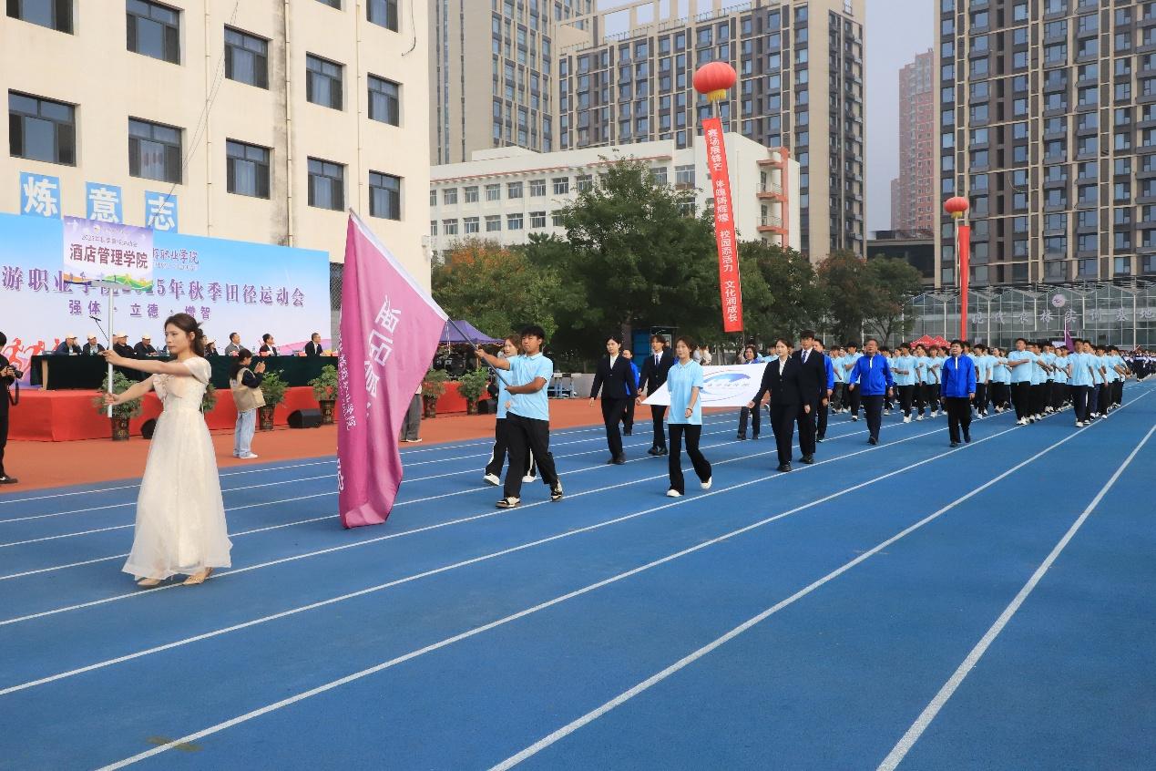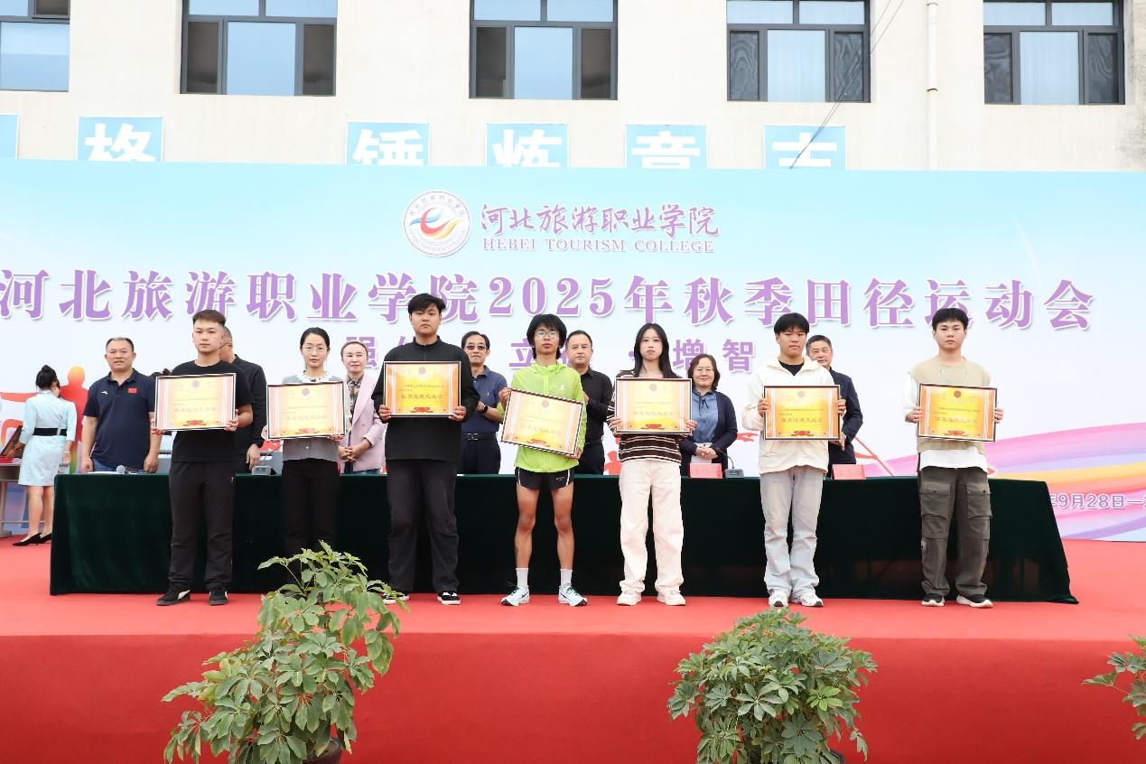 金秋送爽,丹桂飘香。9月28日至29日,河北旅游职业学院2025年秋季田径运动会在南院操场隆重举行。本届运动会以“青春无畏,逐梦扬威”为主题,吸引了全校7个二级学院600余名运动员参与35个项目的激烈角逐。经过两天的拼搏与较量,运动会在热烈的氛围中圆满落幕,展现了旅院学子团结奋进、勇攀高峰的精神风貌。