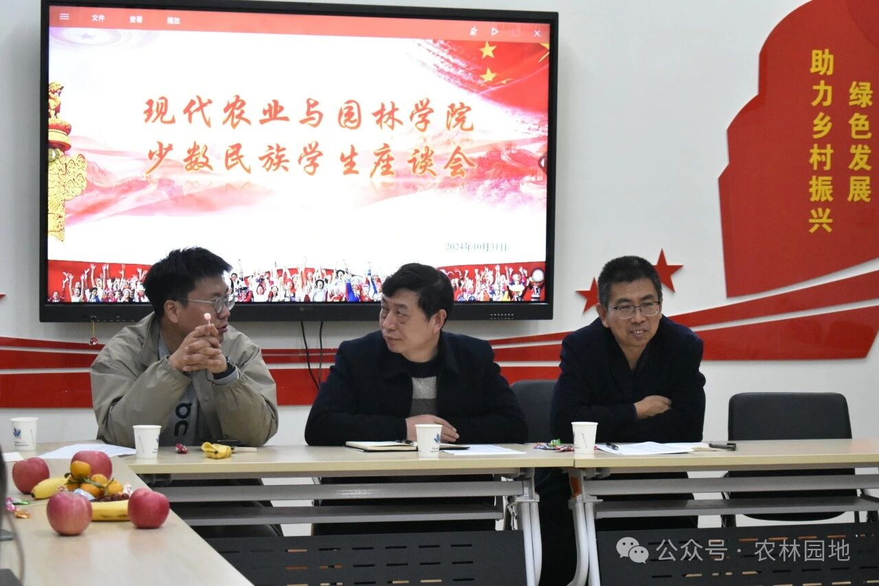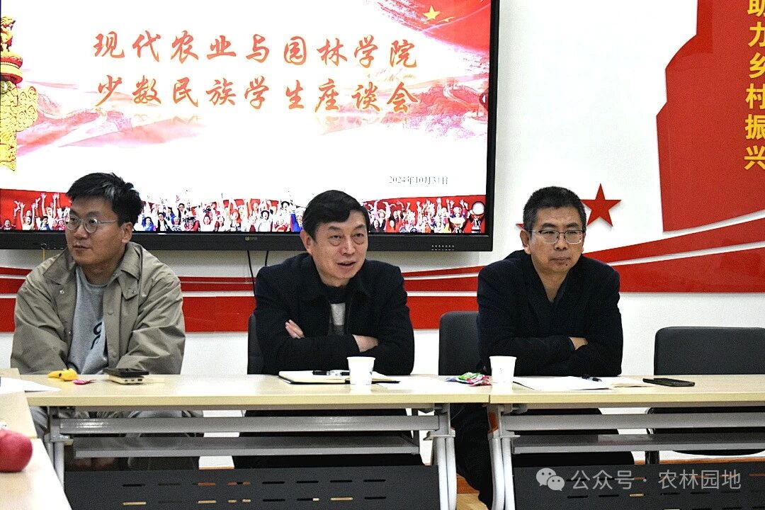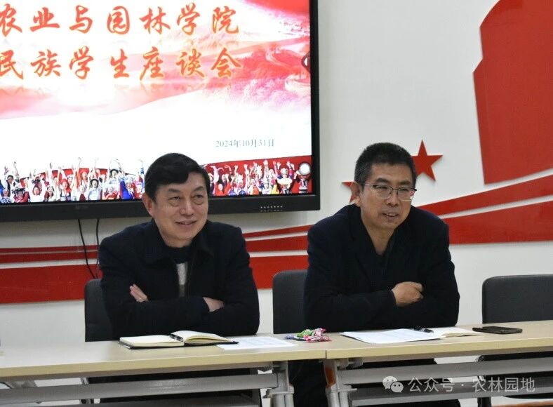 会上,农林学院党总支书记崔海明结合往届少数民族在校经历,让各位同学讲述在校的生活感受例如:在食堂时饮食是否有影响,日常生活有无阻碍等。同时关心同学在课堂上是否会因为语言不通而产生焦虑,积极解决少数民族同学的问题。