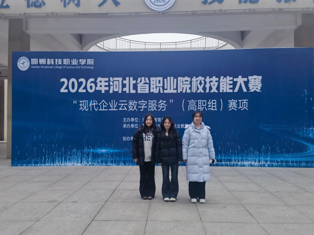 12 月 23 日,2026 年河北省职业院校技能大赛(高职组)现代企业云数字服务赛项在邯郸科技职业学院圆满落幕。会计243班王海洋、孙佳依与金融 242班彭佳宜三位同学跨专业组队参赛,在戴兵、宋航两位指导教师的悉心指导下斩获本次赛项三等奖!本次大赛由河北省教育厅统筹主办,聚焦现代企业数智化服务核心需求,以“以赛促学、以赛促教、赛教相融”为宗旨,设置业财税资融合业务处理、云平台实操应用、专业成果PPT汇报三大核心竞赛模块,全面考核选手的数智化财税技能、团队协作能力与实务应用水平。全省多所高职院校精英队伍同台竞技,赛场竞争异常激烈。
