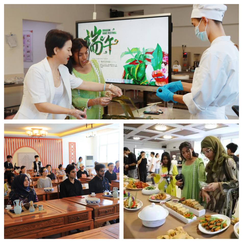 学校持续完善“语言教学+文化体验”发展模式,国际中文教育品牌效应日益凸显。2021年,宣传学校传播中国传统文化工作突出贡献的文章《留学生体验中华传统文化课》登上了新华网官方平台,总点击量超过200万。2022年12月,“标准普通话与中国文化体验中心”被认定为“河北省国际中文教育实践与推广基地”,内设书法、剪纸、冀菜、茶艺等多个工作室,成为中外文化交流的重要平台。近年来,先后邀请承德医学院、河北石油职业技术大学等来自印度、巴基斯坦、越南等国的50余名留学生到校参加中外师生共享浓情端午活动、第一届国际文化艺术节活动。依托学校HSK考点(河北省五个授权考点之一),常态化开展中文等级考试服务,先后为兄弟院校留学生多次提供HSK2级、4级及HSKK中级考试服务。