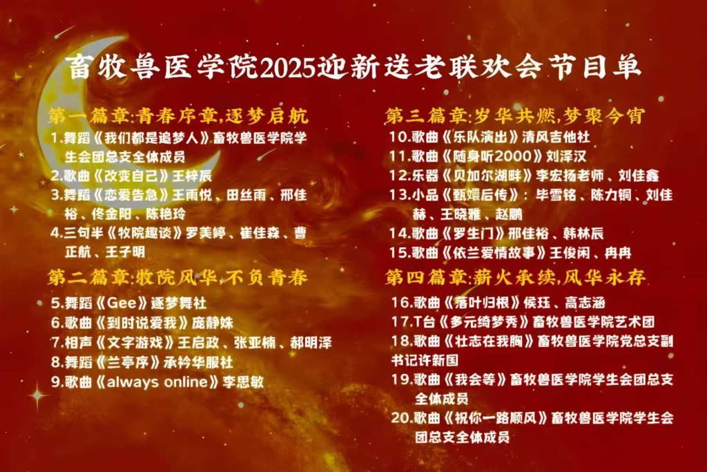 牧医情长,我们即将迎来一场跨越年级的温暖相聚。备受期待的“牧医·元牧”迎新送老联欢会步入倒计时!朝气满满的相逢与依依不舍的道别交织,一场专属于畜牧兽医学院的温情欢乐盛会,即将精彩上演。