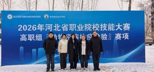 1月18日,由河北省教育厅、河北省现代畜牧业职业教育集团主办,保定职业技术学院承办的2026年河北省职业院校技能大赛高职组“动物疫病检验检疫”赛项。我校畜牧兽医学院代表队以总成绩排名第二,斩获团体二等奖的优异的成绩。此次比赛学院领导高度重视,赛前严格按照参赛指南,提供全方位支持,为参赛师生创造了良好的实训环境。参赛师生团队夜以继日地投入备赛训练,不断提升技能操作水平与应变能力。