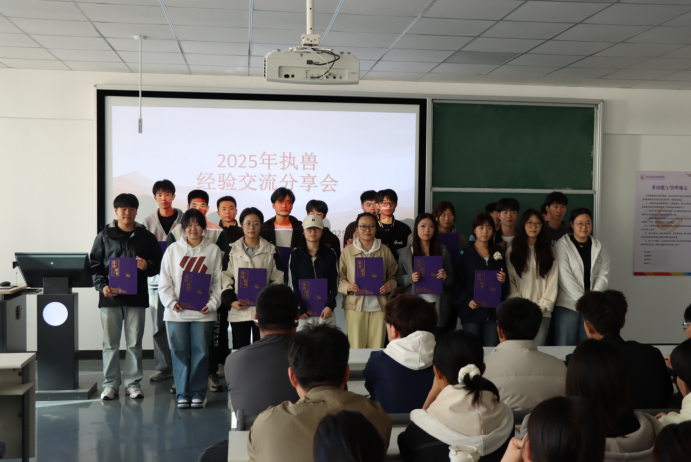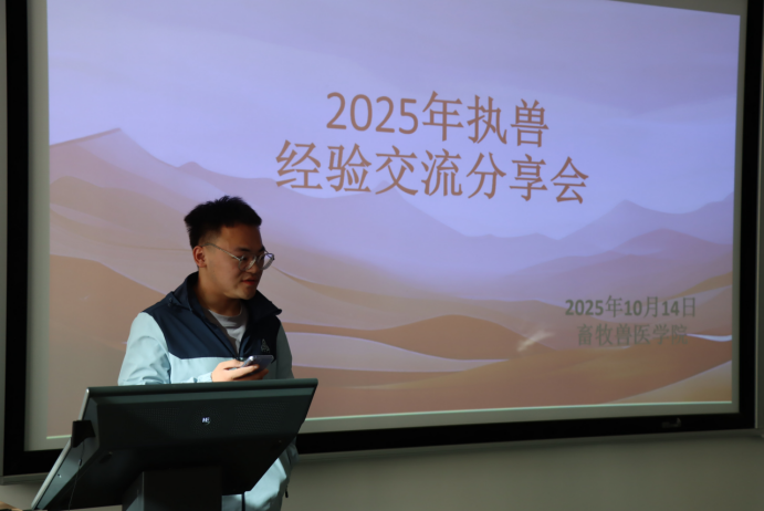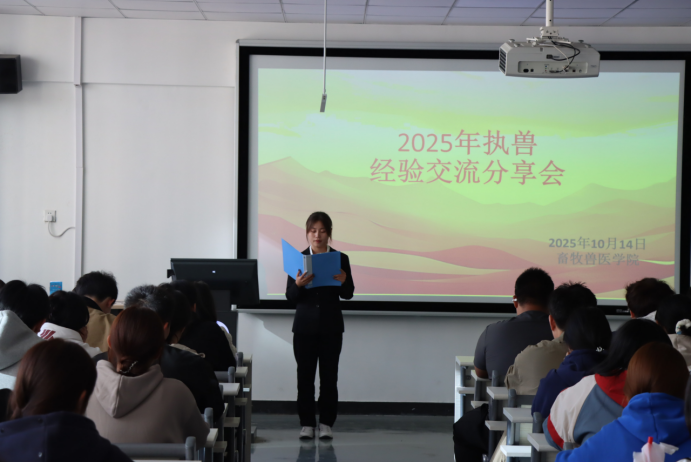 畜牧兽医学院于2025年10月14日在602教室成功举办了执业兽医资格考试经验交流分享会。为了帮助畜牧兽医专业学子更好地备战执业兽医资格考试,明确备考方向,汲取成功经验。同时表彰今年在执业兽医资格考试中取得优异成绩的同学。
