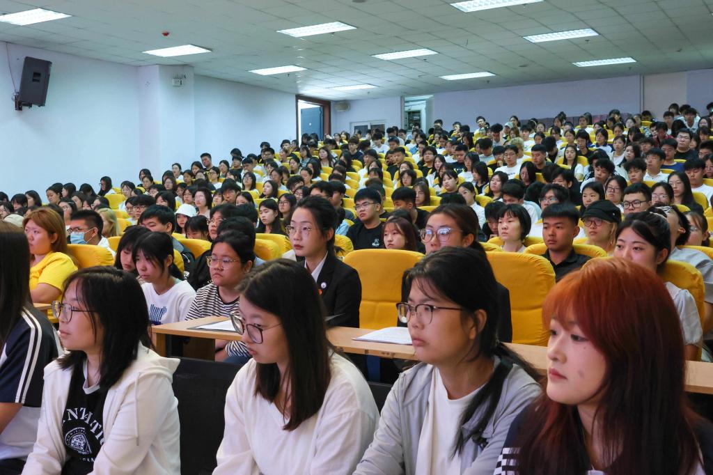 党总支书记韩余以《大学》经典开篇,阐释“大学”的真正含义——不仅是学习专业知识的地方,更是成人之美的生命场。他强调了学院“双立双成”教育理念和“三个一”行为养成体系的实践价值,鼓励同学们在未来的学习与生活中“学会做人、学会做事、学会学习”,同时寄语新生要立大志、明大德、成大才、担大任,将个人理想融入国家发展和民族复兴的伟大事业中,以实际行动践行“请党放心,强国有我”的青春誓言。