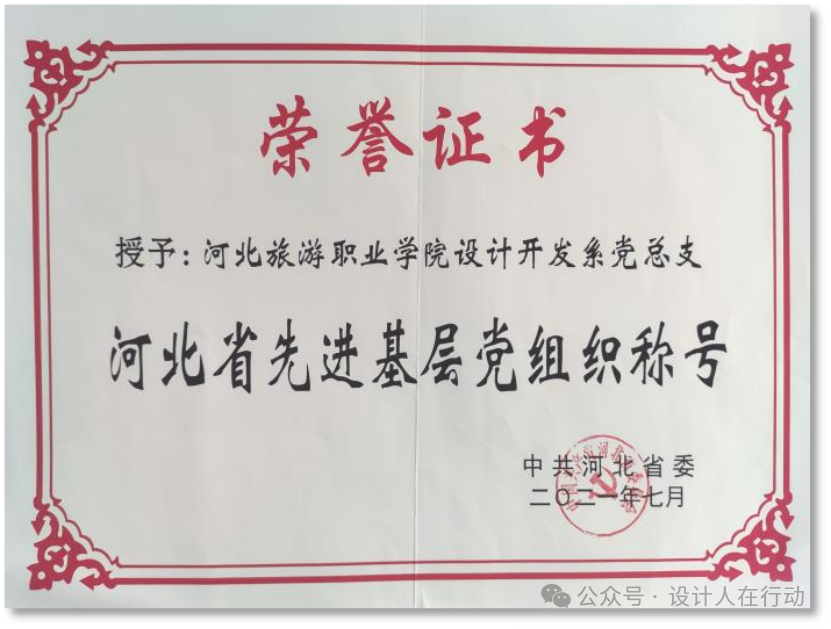 在党建引领下,艺术设计学院各项事业结出累累硕果。党总支于2021年获评“河北省先进基层党组织”,多个班级连年荣获“河北省先进班集体”。近年来,教师党员获“省级先进德育工作者”“承德市优秀共产党员”“承德市工匠”“承德市首批党史专家”等市级以上荣誉近百人次;学生荣获“河北省三好学生”“优秀学生干部”及国家奖学金、励志奖学金数百项。师生在“互联网+”“挑战杯”、职业技能大赛等省级以上竞赛中获奖300余项。承担省级以上党建及专业研究课题20余项,多项成果获省市级教学科研成果奖。“设计人在行动”微信公众号成为网络思政重要阵地,影响力持续扩大。