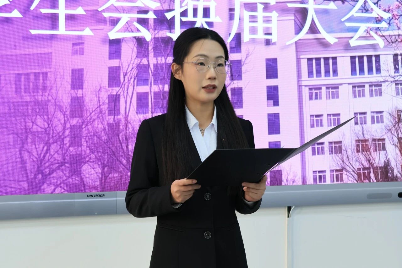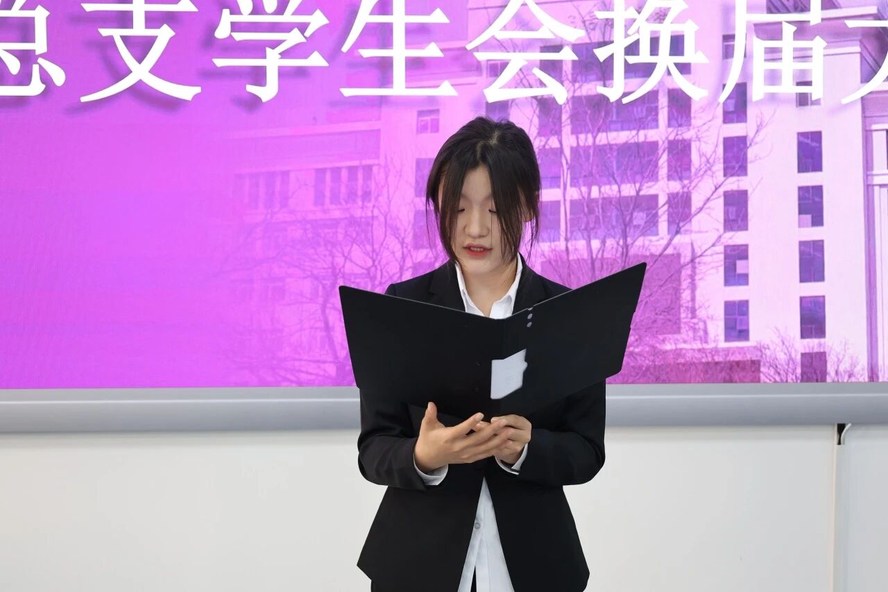 师长寄语,指引方向。团总支书记于立红作为团总支学生会的指导教师,在讲话中肯定了上一届学生会的工作,并叮嘱新一届团学干部要珍视身份、扛起责任,以服务同学为宗旨,以锻炼自我为目标,在工作中甘于奉献、勇于担当、勤于思考、善于合作,用智慧与汗水为学院发展增添绚丽色彩。她以“学生干部是什么”“学生干部如何发挥作用” 两个根本性问题为引,深刻阐释学生干部‘服务者’的定位。她对新一届干部提出三点希望:在责任与奉献中定位价值,在实践与反思中主动提升,在律己与担当中摒弃 “特权思想”与“躺平思想”,字字铿锵,句句恳切,为新干部们厘清了职责边界,指明了奋斗方向。