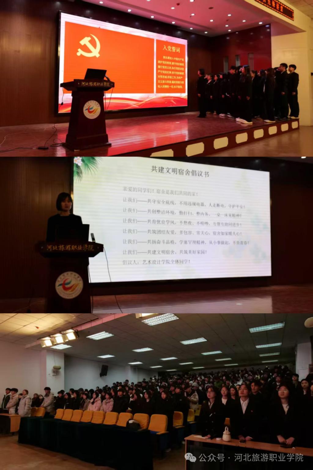 微党课结束后,全体党员重温入党誓词,誓言铿锵,初心如炬。随后,全体同学共同宣读《共建文明宿舍倡议书》,承诺从自身做起、从宿舍做起,以实际行动践行文明公约,共建美好社区。