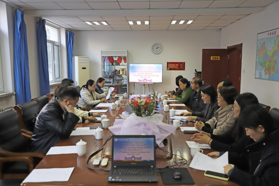 11月20日下午,由国际交流合作中心主办的“剪韵流彩·笔墨笙歌”中外教师传统文化联谊沙龙在南校区2号公寓国际交流合作中心104会议室顺利举行。副校长温守东,艺术设计学院、国际交流合作中心相关负责人与教师,传统文化工作室教师以及中外合作办学项目的两位外籍教师Ms.YUVA与Ms.USHA共同参加活动。