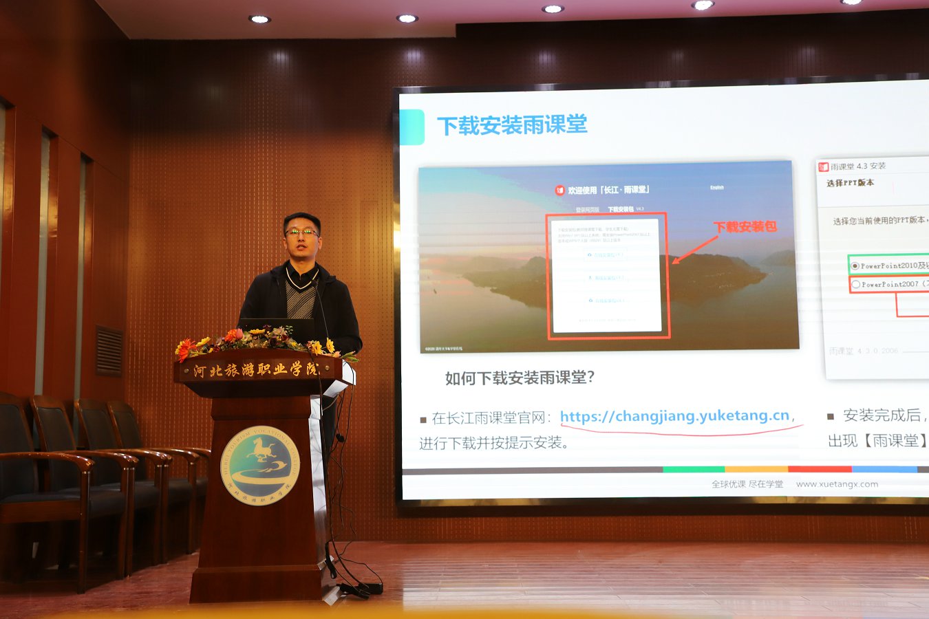 随后,学堂在线高级培训师姚宝峰从如何用雨课堂组织好一门课进行了实操培训。培训结束后,张教授一行参观了我院旅游实训中心。