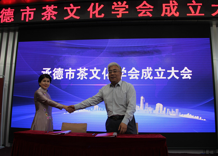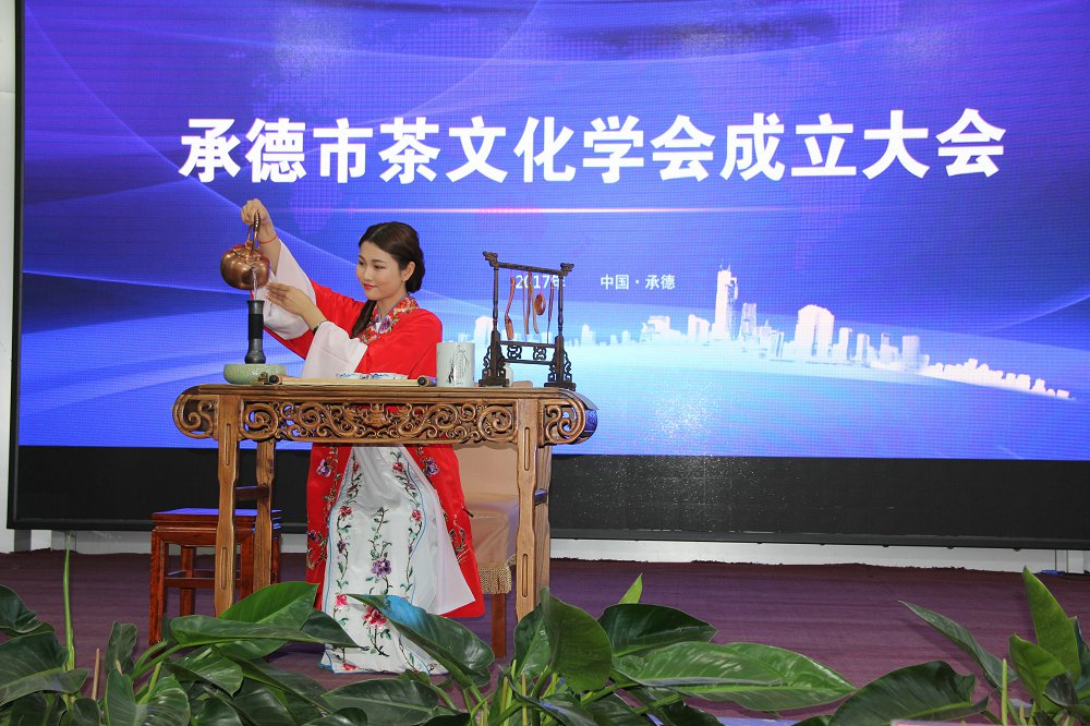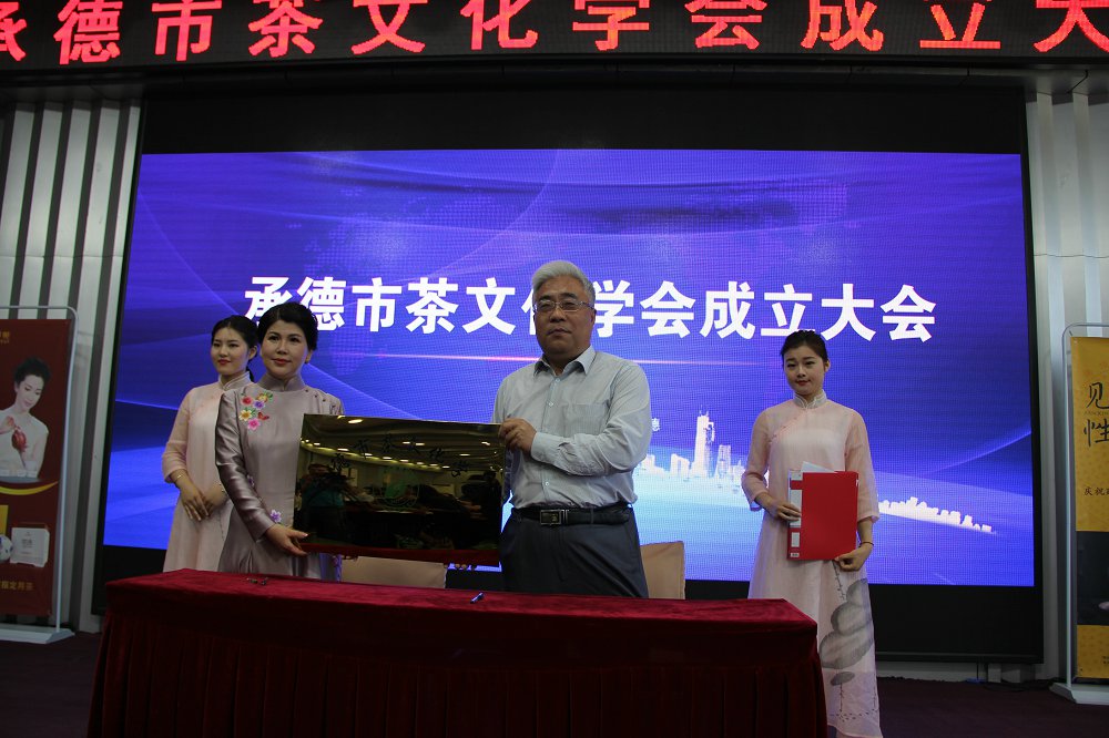 5月23日上午, 承德市茶文化学会成立大会在山庄宾馆举行。承德军分区司令员陈德光、市政协副主席关继高、原副市长张建国、原政协副主席于列等出席成立大会。市社科联、市工商联、市政协等相关领导参加了大会,并为学会揭牌剪彩。汤云航院长被聘为承德市茶文化学会名誉会长。