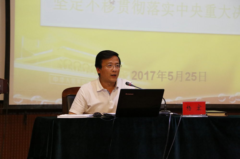 学院党委书记杨宏同志以《树立核心意识 凝聚发展共识——坚定不移贯彻落实中央重大决策部署》为题作了主题宣讲。杨宏书记从“高超舵手,驾驭航船”“一带一路,大道之行”“国家大事,千年大计”“敦行致远,面向未来”四个方面对增强“四个意识”、落实中央重大决策部署以及做好学院主要工作进行了全面解读。杨书记指出,十八大以来,在以习近平同志为核心的党中央领导下,领航中国这艘巨大航船,踏艰克难,度险闯关,取得了令世人瞩目的辉煌成就。杨宏书记强调,习近平总书记倡导的“一带一路”宏伟构想,顺应了世界多极化、经济全球化、文化多样化、社会信息化的大潮流,是一项造福全人类的伟大事业。杨宏书记指出,党中央决定设立雄安新区,是深入推进京津冀协同发展的重大战略部署,要深刻认识规划建设雄安新区的重大意义,要准确把握雄安新区规划建设的总体要求、目标任务,要全面贯彻落实省委九届三次全会精神。杨宏书记最后强调,2017年是学院改革发展稳定至关重要的一年,只要全体教职工团结一心、脚踏实地,振奋精神、勇于担当,就一定会实现学院的奋斗目标。