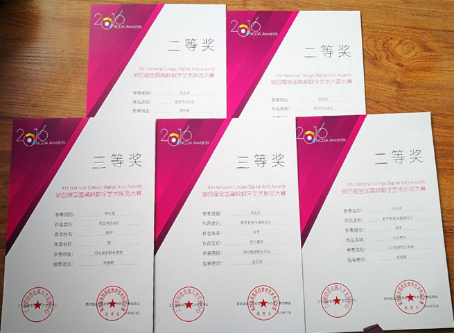“第四届全国高校数字艺术作品大赛”于5月启动至10月7日截止,比赛有全国500多所高校参加,共收到作品5800多份。我院信息技术系组织动漫设计与制作专业、数字媒体专业学生积极参加比赛,通过初赛、复赛、专家评审,信息技术系共有五幅作品获奖,其中动漫151班吴宇同学的两幅作品 《光风霁月》《云兴霞蔚》分别获得数字影像与视频设计类作品二等奖和三等奖,动漫141班杨利庭同学作品《雾都》获得视觉传达设计类作品二等奖,动漫 151王琼同学作品《酒后驾车》获得视觉传达设计类作品二等奖,动漫151陈宁同学作品《困》获得视觉传达设计类作品三等奖。