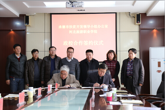 汤云航院长和王志宏主任代表校政双方,共同签署了《河北旅游职业学院--承德市扶贫开发领导小组办公室校政合作框架协议》。在框架协议的指导下,校政双方将在驻村干部、农村致富带头人、贫困劳动力和贫困地区初高中毕业生等新成长劳动力技能培训,扶贫培训课程体系开发、教育扶贫、技术扶贫、农村科技创业行动方面开展全方位深度合作。
