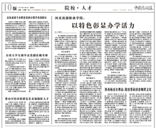 8月6日,《中国旅游报》第10版“院校•人才”刊登了我院教师撰写的“河北旅游职业学院:以特色彰显办学活力”的文章。文章从招生、就业、教学、师资等方面介绍了学院的办学特色与活力。(宣传部供稿)