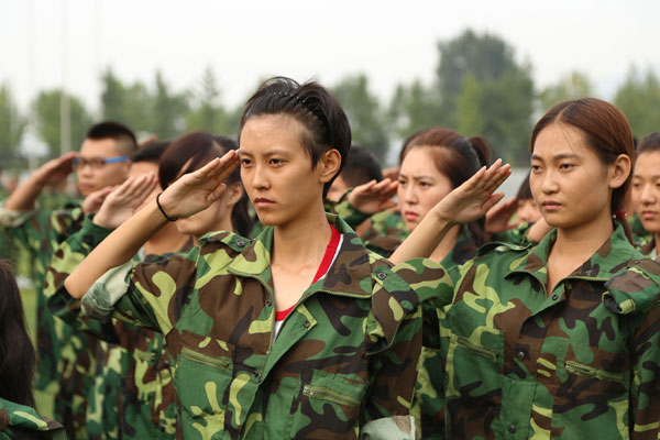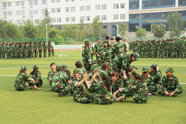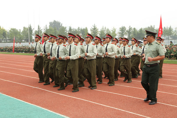 军训教员们在动员大会上进行了精彩的队列表演。表演结束后,新生集中军训活动紧张有序地开展起来。(保卫处供稿)