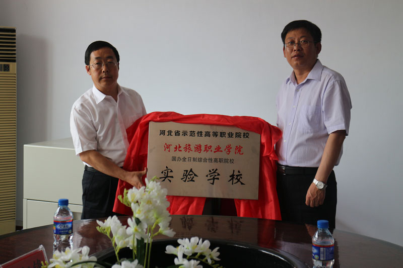 学院副院长刘占明、沧州市东光县职教中心校长于炳锋在揭牌仪式上分别发表讲话,表示将以此为契机,进一步拓宽两校合作的深度和广度,探索合作共赢的联合办学机制,促进河北职业教育的发展。刘占明副院长、于炳锋校长共同为“河北旅游职业学院实验学校”揭牌。