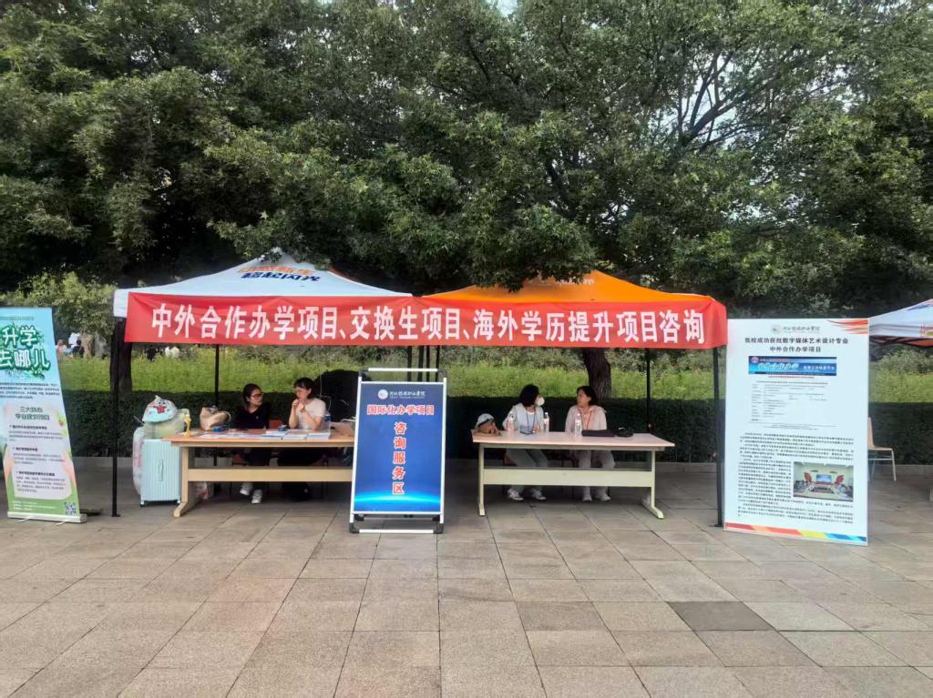 9月6日,我校在迎新现场专门设立国际化办学项目咨询服务区,为2025级新生提供中外合作办学项目、交换生项目、海外学历提升项目咨询服务。国际交流合作中心工作人员和海外院校代表共同就学校近年来成功开展的各类项目为新生及家长答疑解惑。