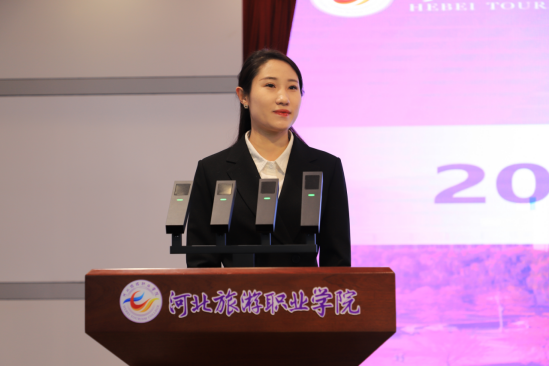 在庄严的宣誓环节,全体新入职教师在校领导的见证下,面向校旗郑重宣誓,表达了忠诚教育事业、恪守教师职业道德、为学校发展贡献全部力量的坚定决心。随后,新教师代表司佳鑫发言,她代表全体新教师表达了对加入旅院大家庭的喜悦与憧憬并表示一定要以优秀教师为榜样,严格要求自己,虚心学习,争取早日成为学校的骨干教师。