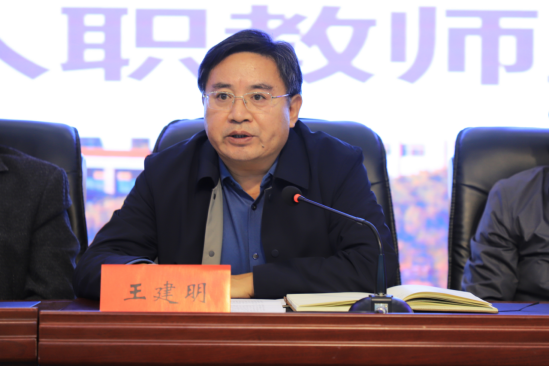 王建明在讲话中强调,全体教师要坚持以“四有”好老师为标准,将个人发展融入学校“本科高职·百年名校”建设蓝图,为实现学校战略愿景贡献力量。