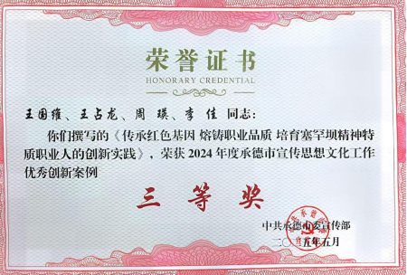 红色基因铸魂,培育“塞罕坝精神特质”职业人。五年来,在校党委的领导下,深挖塞罕坝精神中蕴含的丰富政治内涵和宝贵职业人品质,开发实施“培育具有塞罕坝精神特质的职业人”16学时必修课程,纳入各专业人培方案,典型经验被媒体多方报道,广受好评。坚持理论与实践相结合,每年组织300名师生赴塞罕坝机械林场开展实践教学,形成了生动而深刻的思政实践课品牌。2024年,学校与长沙职业技术学院签订“用塞罕坝精神和雷锋精神携手共育时代新人合作协议”,在利用红色文化培育学生职业素养方面发挥了较强的示范引领作用。“传承塞罕坝精神 熔铸职业品质,培育具有塞罕坝精神特质的职业人创新实践”荣获河北省第二十三届高校思想政治工作创新案例三等奖、承德市思想宣传文化工作创新案例三等奖。