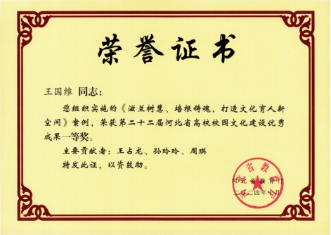获第二十二届河北省高校校园文化建设优秀成果一等奖
