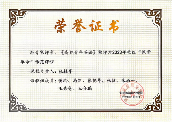 聚力一流课程建设,打造教学改革示范标杆。学校大力支持课程创新,教学团队《高职专科英语》课程建设取得显著成效,获评校级在线开放课程及“课堂革命”示范课程。该课程在教学内容、方法手段、评价模式等方面的革新实践,为全校深化课堂革命、推动信息技术与教学融合提供了可复制、可推广的宝贵经验。