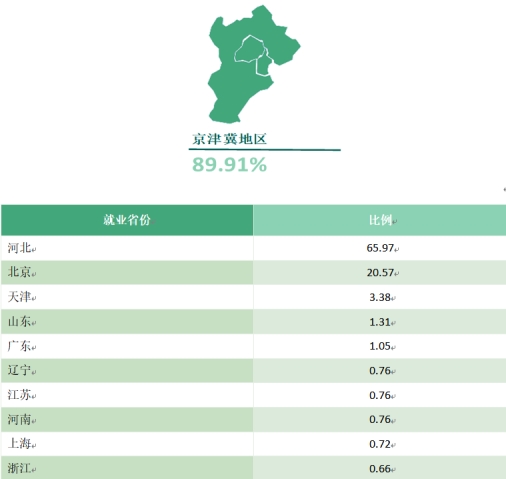 服务京津冀协同发展,彰显高职使命担当。学校积极引导毕业生服务京津冀地区国家发展战略,面向重点区域就业,为国家经济建设与产业结构转型提供人才支持。学校2024届毕业生中,89.91%的毕业生在京津冀地区就业。他们在农牧业、信息技术、金融服务、文化旅游等重点产业领域发挥了重要作用,成为推动区域产业升级和创新发展的重要力量。