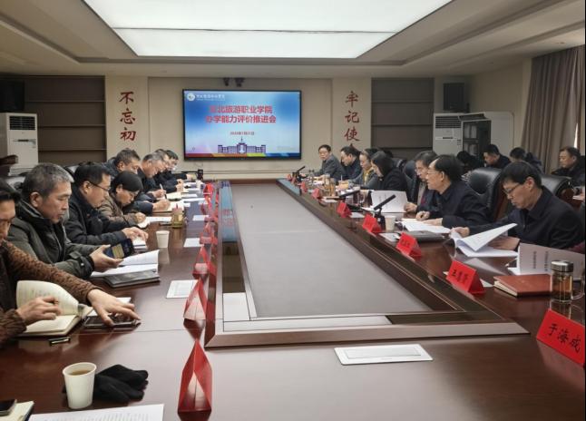 为精准锚定工作方向、压实工作责任,确保高质量完成办学能力评价各项任务部署,1月21日下午,学校在行政楼501会议室召开办学能力评价工作推进会议。学校领导班子成员,各职能部门、各系(二级学院)部主要负责人参加会议。会议由副校长温守东主持。