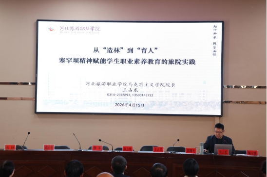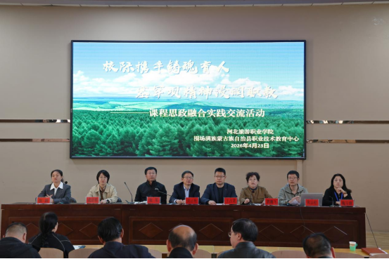 为推广交流我校育人改革成果,进一步加强中高职思政协同育人,4月15日、4月23日,应我市承德县职业技术教育中心和围场满族蒙古族自治县职业技术教育中心邀请,学校党委委员、教务处处长刘占明带队,科研中心主任刘成军、马克思主义学院院长王占龙和相关教师代表到两校进行交流。王占龙以我校获2025年河北省教学成果奖一等奖成果《锚定培根铸魂、恪守知行合一:塞罕坝精神植入学生职业素养教育的创新与实践》为题进行专题讲座,酒店管理学院教师冷宁、畜牧兽医学院教师张妍、信息与智能工程学院教师张云松分别通过“案例讲解+视频展示+技巧分享”的方式,详细汇报了塞罕坝精神融入专业课的教学思路、方法、落地细节与课程思政建设成效。承德县职教中心校长田福生、围场县职教中心校长张军,分别组织领导班子成员和全体教师参加交流活动。活动现场氛围热烈,教师交流互动积极,对塞罕坝精神融入课程思政教学表示高度认同,很好推进了校际间教学成果共享、教学经验互学。