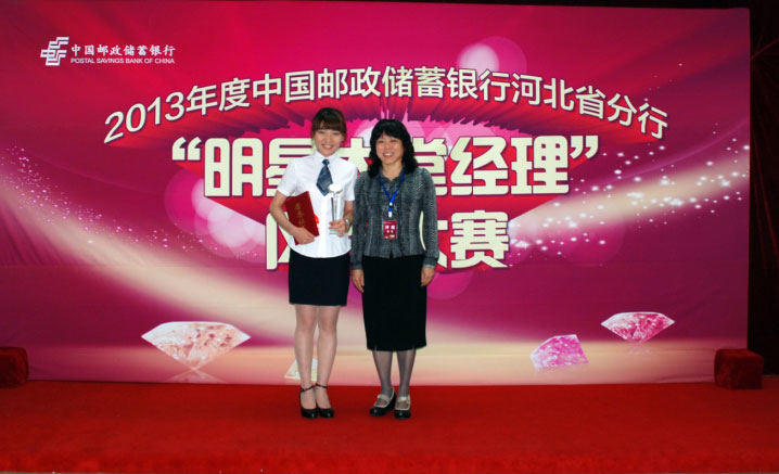 回顾龚正从我校毕业后的这5年,始终我们所看到的都是一个勤勤恳恳,吃苦耐劳的工作,默默积累和汲取成长养分的龚正。厚积薄发,2013年7月份,在河北省分行组织的“明星大堂经理风采大赛”中获得第一名,摘得“财富之星”的荣誉称号,获得代表河北省分行参加总行明星大堂经理选拔的唯一资格。在总行选拔中取得第二名的好成绩,并作为五名入围选手之一代表中国邮政储蓄银行参加中国银行业协会组织的“中国银行业文明规范服务明星大堂经理专家评审”活动,最终被中国银行业协会授予“魅力之星”的荣誉称号。