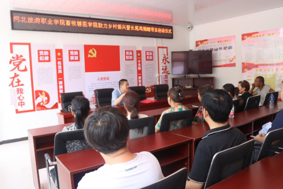活动中,闫港介绍了学院的专业特色,并表示愿意发挥学院专业技术和特长,助力西沟营村养殖家禽、肉牛、肉羊等,帮助村民拓宽创收途径;郑艳建议通过分散饲养承德坝上长尾鸡,调动留守老人参与养殖,借助院地合作采用微牧养殖模式,提高师生服务地方水平,同时有利于西沟营村发展本村经济,增加留守老人收入。冯建华感谢学院为村里经济发展提供的支持和帮助。闫港、冯建华分别代表畜牧兽医学院、西沟营村委会签署养殖技术指导意向书,为双方深度合作打下基础。畜牧兽医学院教师李健为农户进行坝上长尾鸡养殖培训。最后,驻村工作队根据分配方案,为11户村民发放了坝上长尾鸡。
